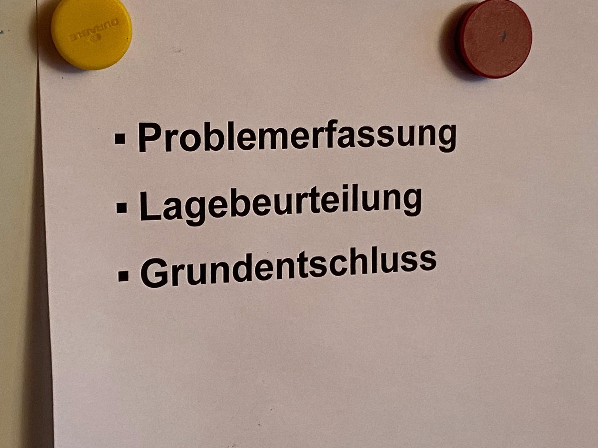 Anhand von ausgewählten zivilen Problemstellungen wird die in der Armee standardisierte Entschlussfassung angewendet und geübt.