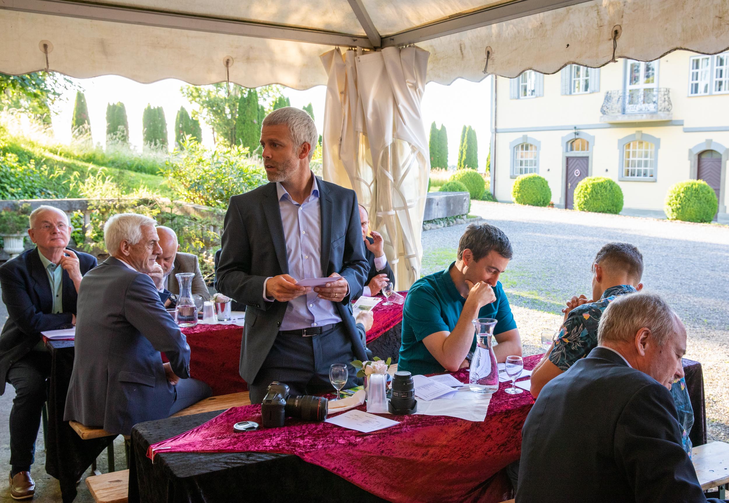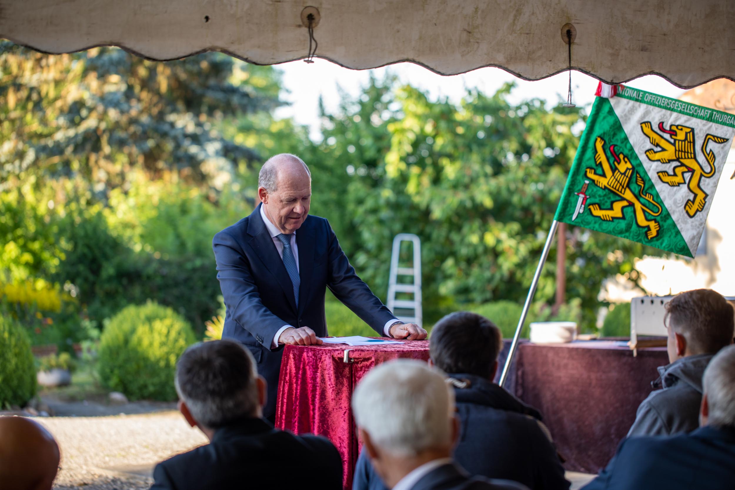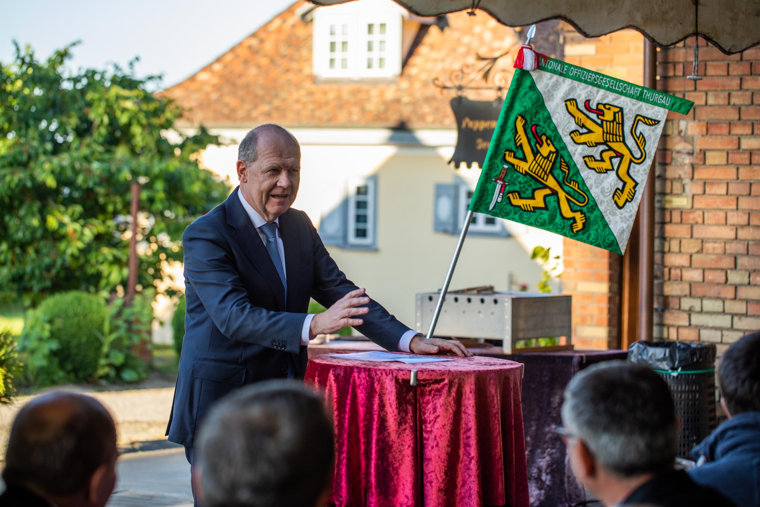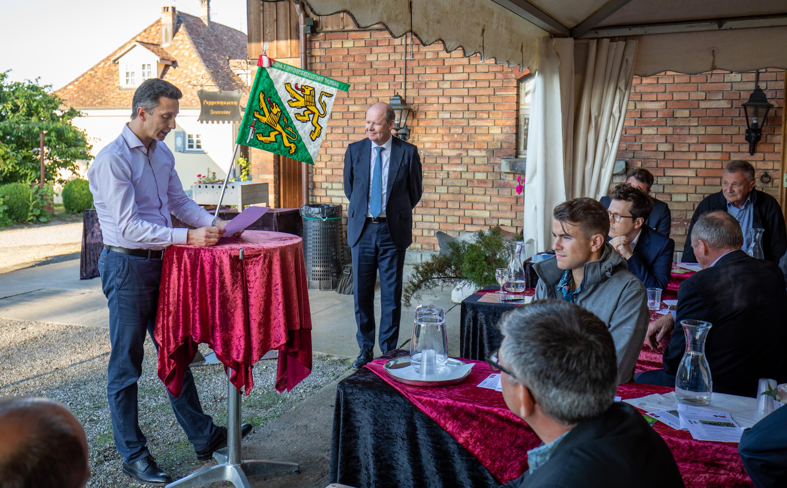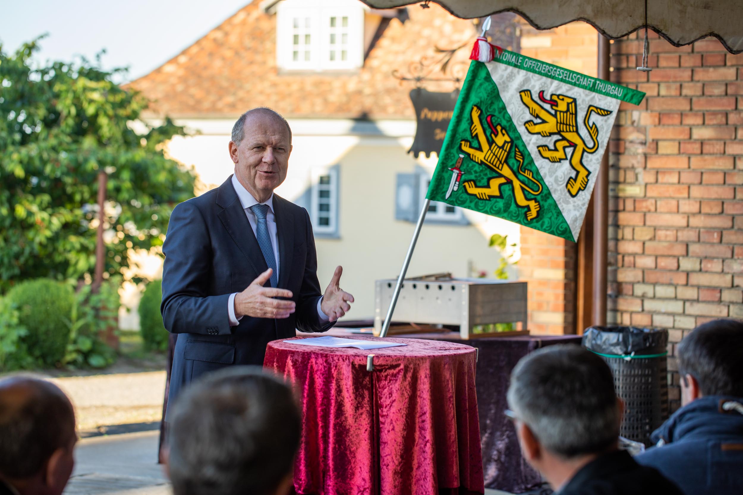 Schweizerischer Arbeitgeberpräsident Valentin Vogt referierte im Anschluss unter freiem Himmel zum Thema „Sicherheit – Standortfaktor für die Schweiz“.