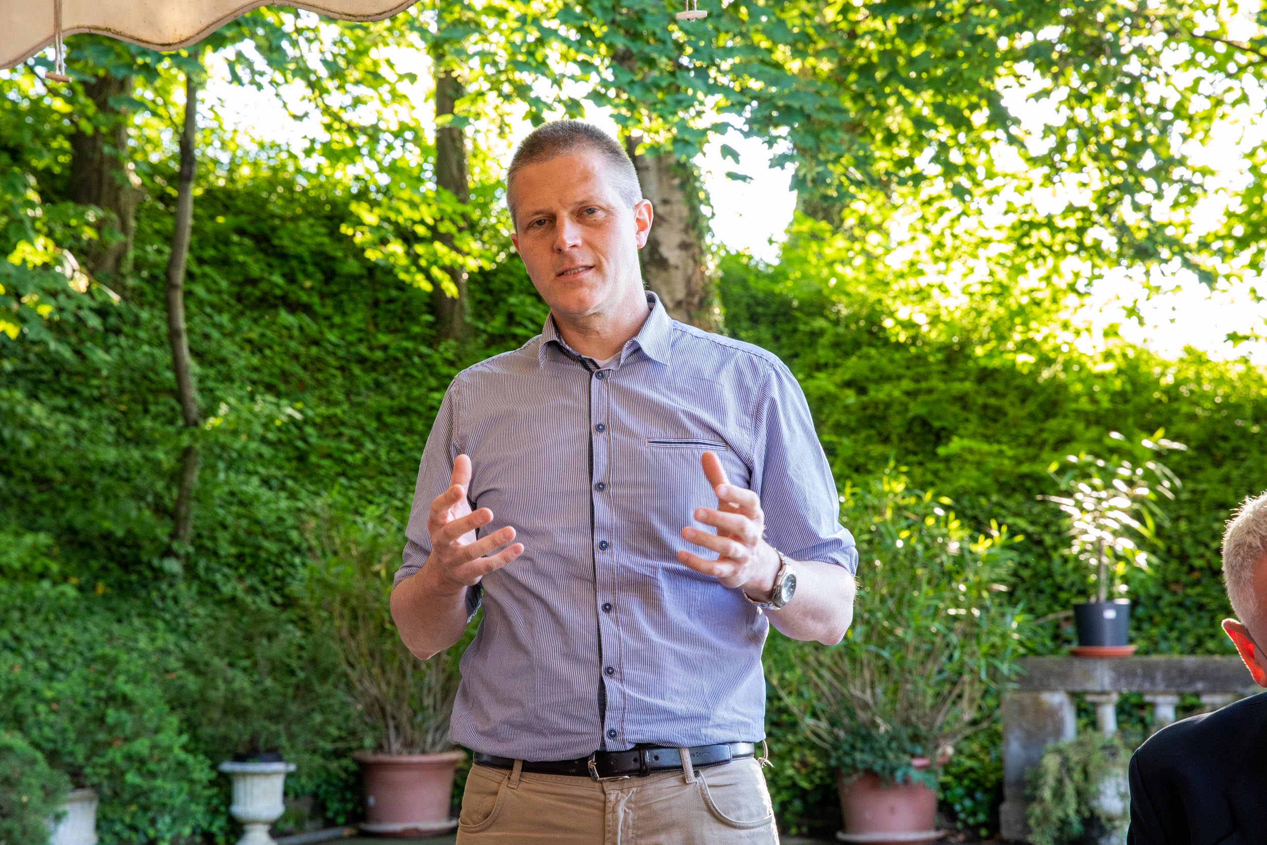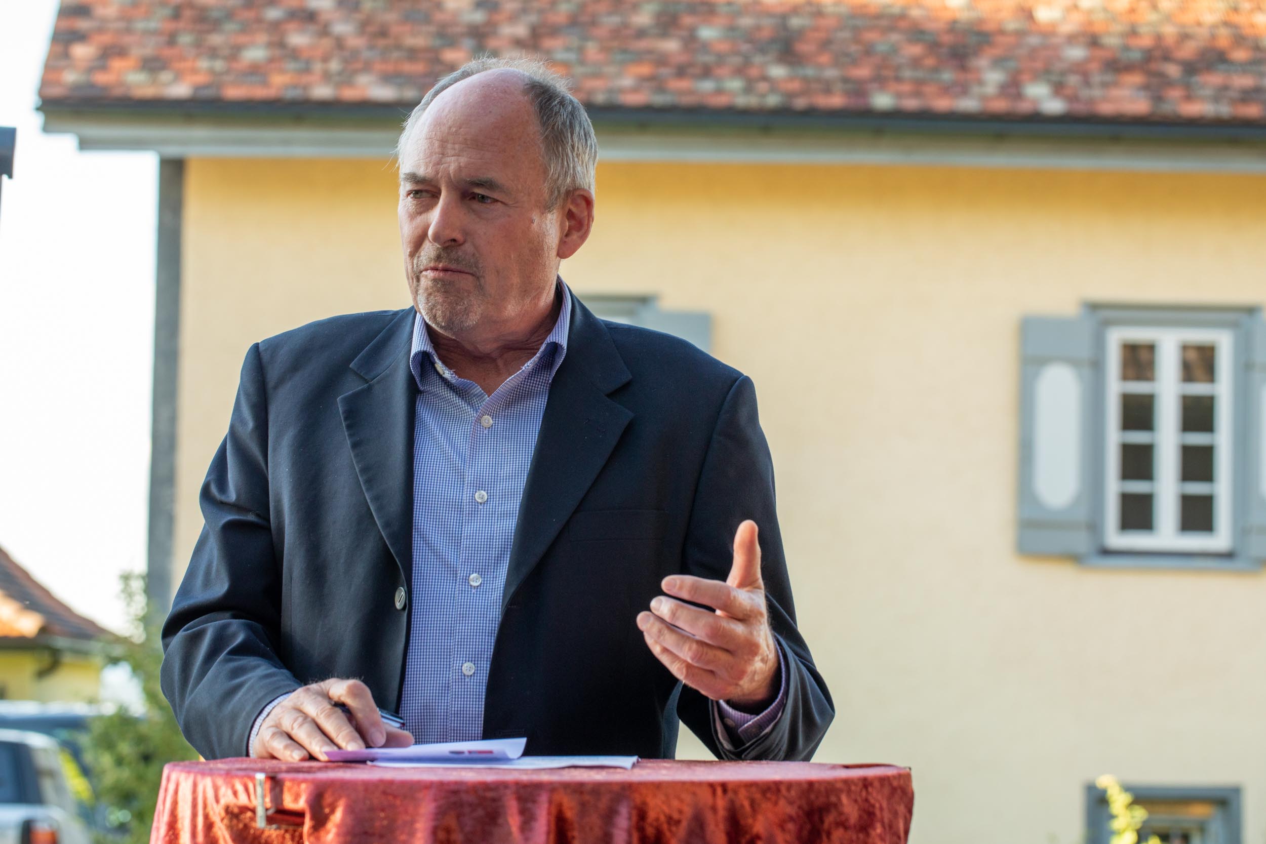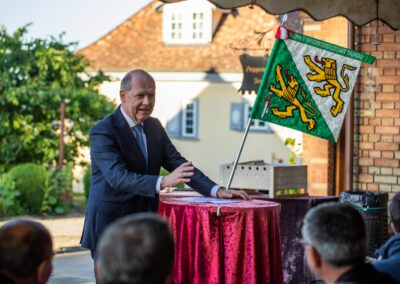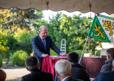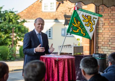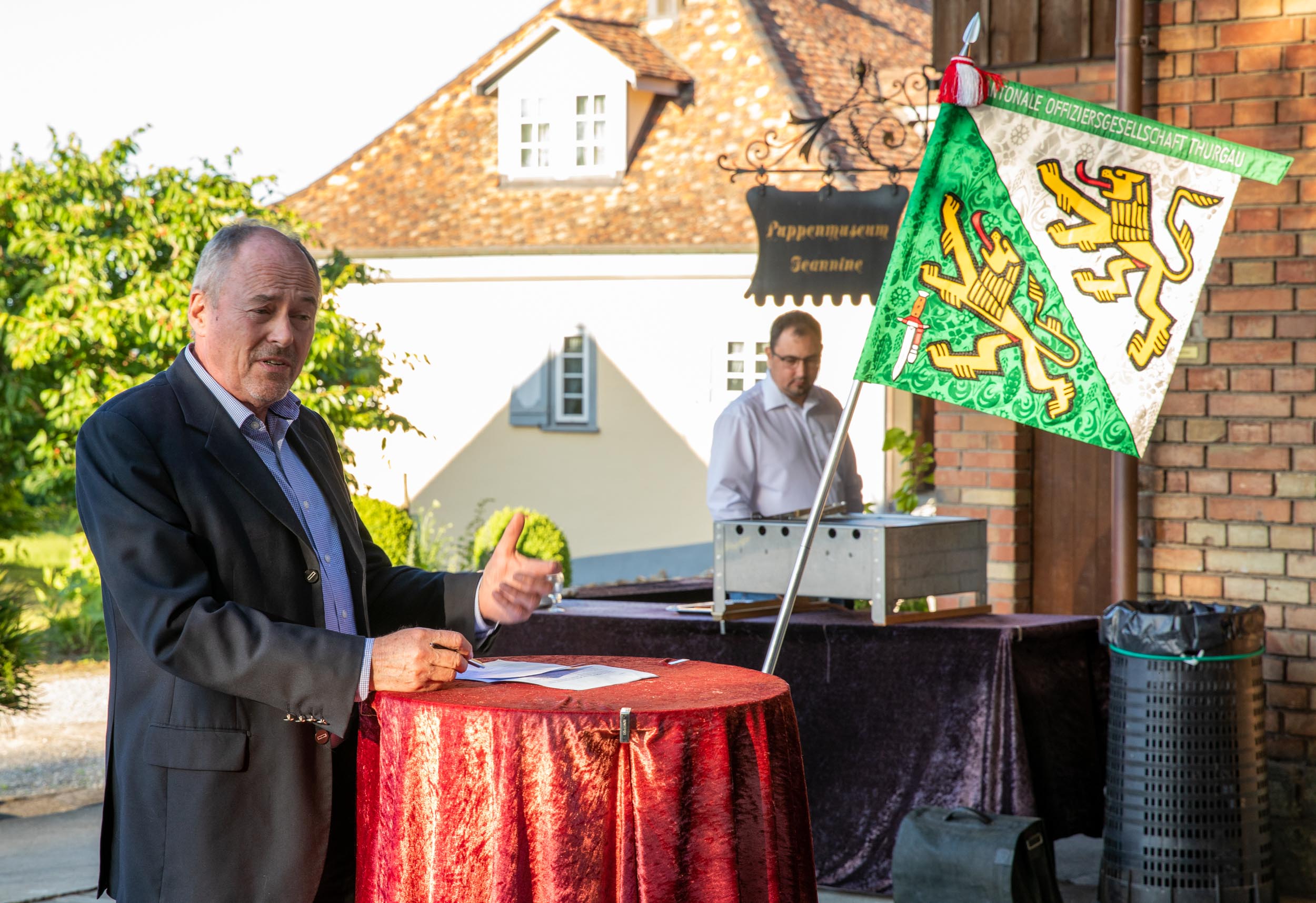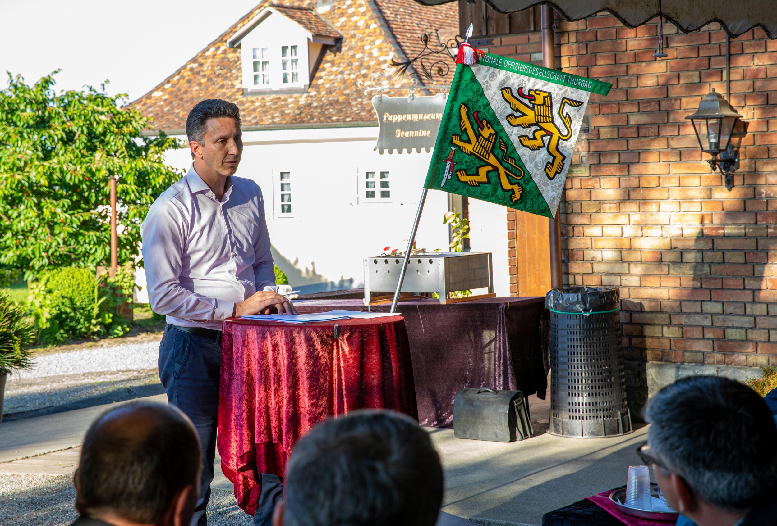 Schweizerischer Arbeitgeberpräsident Valentin Vogt referierte im Anschluss unter freiem Himmel zum Thema „Sicherheit – Standortfaktor für die Schweiz“.