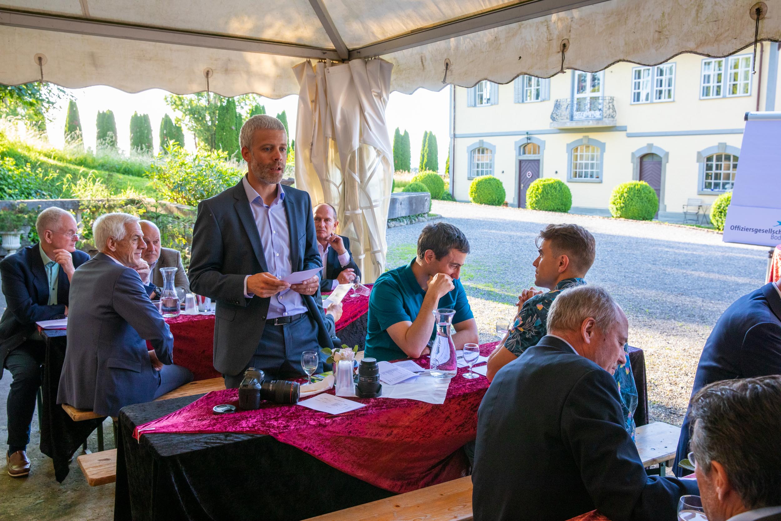 Am 10. Juni 2022 fand bei Kaiserwetter die Jahresversammlung der Offiziersgesellschaft Bodensee statt. Präsident Christof Richard führte routiniert und zielstrebig durch den statutarischen Teil der GV. Das schöne Schloss Girsberg bot die stimmungsvolle Location dazu.